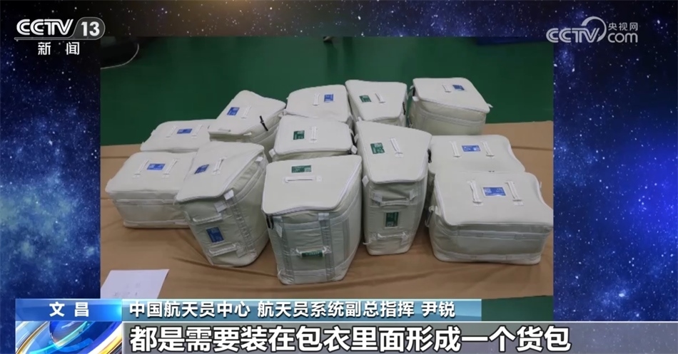中國(guó)航天員中心 航天員系統(tǒng)副總指揮 尹銳:上行貨包外包裝的包衣,這個(gè)包衣里面添加了一些甲殼素的材料,讓它具有了一些抗菌防霉的作用。我們乘員的物資、航天員個(gè)人的裝備等以及環(huán)控生保的這些物資,都是需要裝在包衣里面形成一個(gè)貨包,然后整船進(jìn)行交付。
