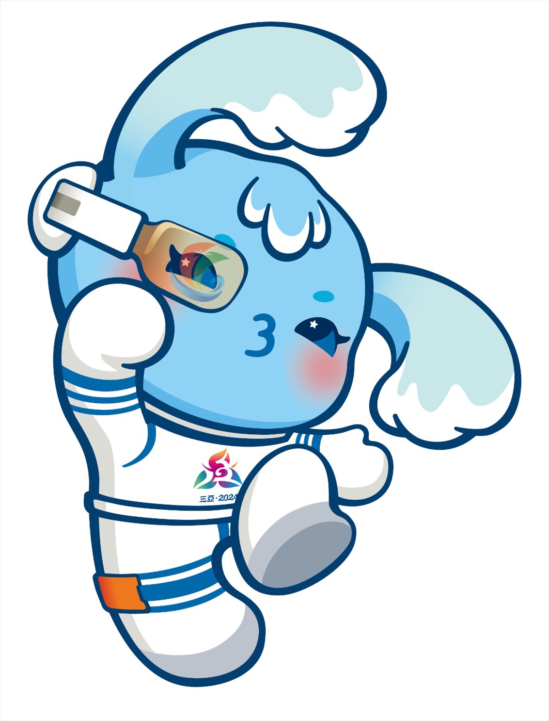 吉祥物由清華大學(xué)美術(shù)學(xué)院團隊創(chuàng)作完成。吉祥物“吉貝”是一只海精靈,名字取自《尚書·禹貢》和蘇東坡的詩詞,在歷史上專指“黎錦”這一中華民族優(yōu)秀傳統(tǒng)文化的典型代表,黎錦也是世界級非物質(zhì)文化遺產(chǎn),同時“吉貝”也有“吉祥寶貝”的意思;海精靈身著宇航服,寓意星辰大海,佩戴的AI智能眼鏡中映射出海南自由貿(mào)易港的標(biāo)志,寓意科技與現(xiàn)代化。海精靈展現(xiàn)了中華民族團結(jié)奮斗、揚帆征程,攜手邁向中國式現(xiàn)代化的精氣神。