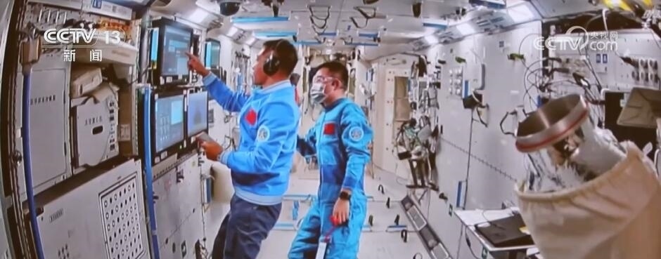 上午9時許,神十七航天員打開空間站核心艙后向艙門,根據(jù)地面技術(shù)人員指引,完成艙門氣密性檢查、環(huán)境檢查等開艙前準備工作。