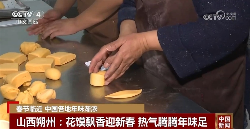 在山西朔州市的一家面塑花饃店里,面點師傅們正在趕制花饃等傳統(tǒng)美食,為即將到來的新春佳節(jié)做足準備。由果蔬調色、純手工制作的花饃不僅口感好,而且造型精美,備受顧客青睞。