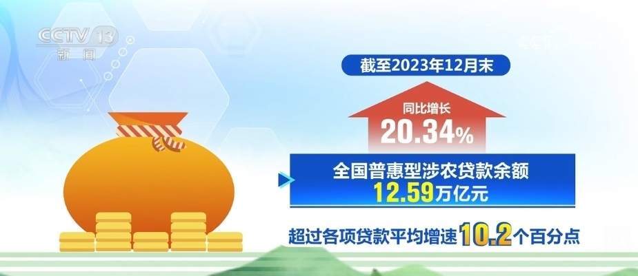 截至2023年12月末,全國(guó)普惠型涉農(nóng)貸款余額12.59萬(wàn)億元,同比增長(zhǎng)20.34%,超過(guò)各項(xiàng)貸款平均增速10.2個(gè)百分點(diǎn)。2023年,新發(fā)放普惠型涉農(nóng)貸款平均利率5.11%,同比下降0.87個(gè)百分點(diǎn)。