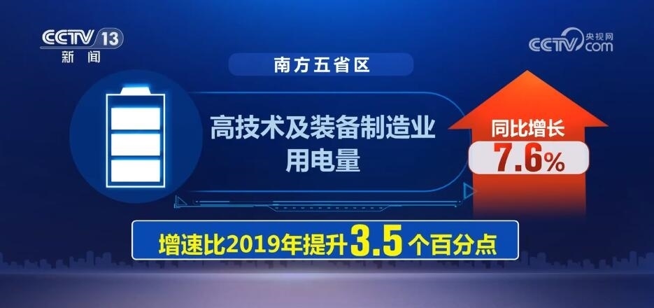 而在南方電網(wǎng)經(jīng)營(yíng)區(qū)域內(nèi)的廣東、廣西等五省區(qū),高技術(shù)及裝備制造業(yè)用電量同比增長(zhǎng)7.6%,增速比2019年提升3.5個(gè)百分點(diǎn),反映工業(yè)經(jīng)濟(jì)轉(zhuǎn)型升級(jí)態(tài)勢(shì)加快。