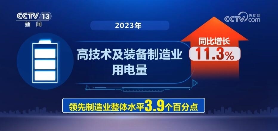 來自中國(guó)電力企業(yè)聯(lián)合會(huì)數(shù)據(jù)顯示,2023年,高技術(shù)及裝備制造業(yè)用電量同比增長(zhǎng)11.3%,領(lǐng)先制造業(yè)整體水平3.9個(gè)百分點(diǎn)。