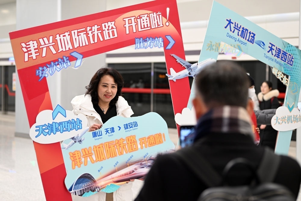 2023年12月18日,旅客在大興機(jī)場站拍照留念。當(dāng)日,津興城際鐵路正式開通運(yùn)營。新華社記者 李然 攝