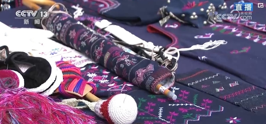 “過春節(jié),穿新衣。”民族刺繡一針一線繡出來了山川湖海、日月繁星,不僅有帽子、衣服,還能做成杯墊、雨傘等,搭配起來都很好看。