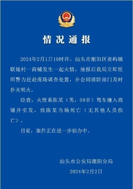 ·汕頭一男子駕車撞入商鋪引發(fā)火情,其當(dāng)場死亡。