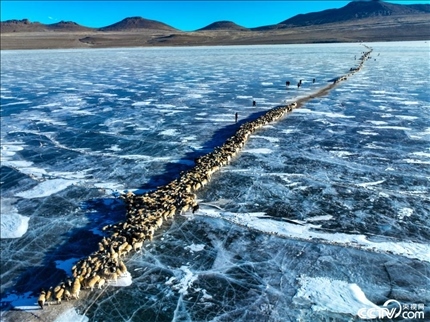 西藏山南,在浪卡子縣打隆鎮(zhèn)普莫雍錯,迎來一場震撼的“冰湖趕羊”盛宴,這一獨特的自然人文景觀,已經(jīng)有上千年歷史。
