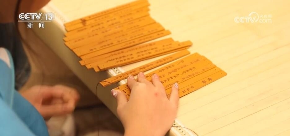 在曲阜的中華優(yōu)秀傳統(tǒng)文化國際研學(xué)營地里,孩子們著漢服、習(xí)禮儀,在鳴贊官的帶領(lǐng)下行拜師禮。禮敬先師的同時,孩子們還體驗了《韋編三絕》課程,將寫有論語的竹簡按序排列好,再用針線緊密縫制起來。通過這種親手編制竹簡的方式,孩子們體會到了孔子當年刻苦學(xué)習(xí)的精神,心中種下熱愛傳統(tǒng)文化的“種子”。