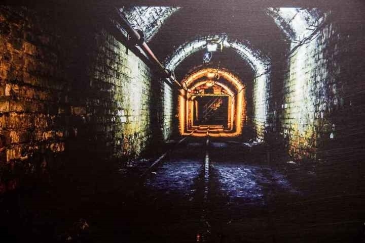 一行人換上礦工服,戴上安全帽和礦燈,乘著罐籠,下到地下900多米的井底。又沿著高低不平的巷道,走了1500多米,到了采煤的地方。