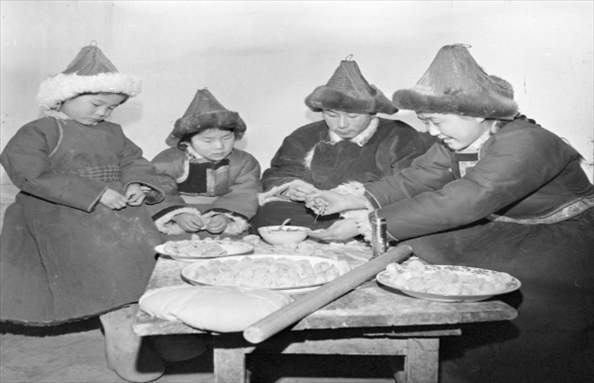 1981年,內(nèi)蒙古呼倫貝爾牧民高高興興包餃子過春節(jié)。