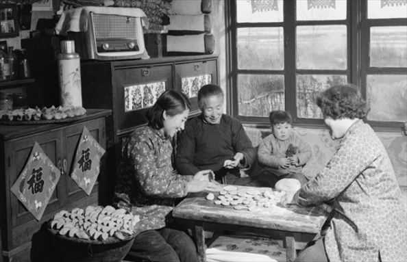 1962年,遼寧開原一戶居民在包餃子。