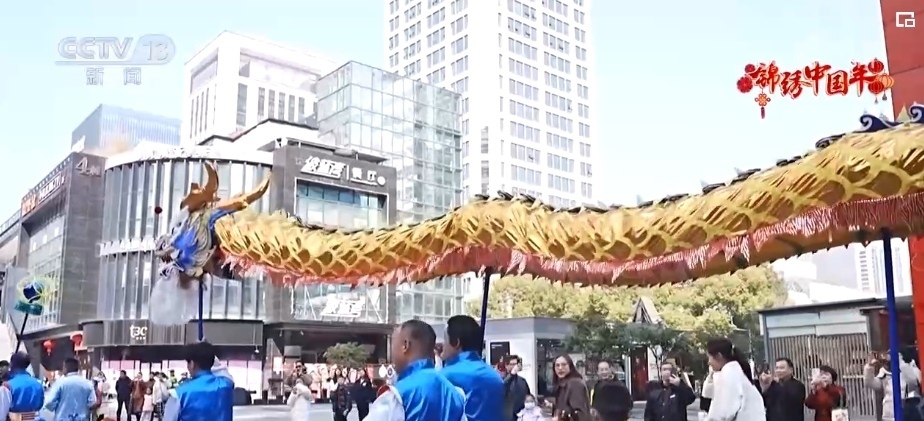 在浙江杭州,一場(chǎng)熱鬧的舞龍巡游活動(dòng)將全城的過年氛圍拉滿。這條50多米長(zhǎng)的“臨安水龍”,來(lái)回穿梭于杭州各大商圈,做出“水中戲珠”“戲水搏浪”,盤、滾、游、翻等高難度動(dòng)作。最有特色的,是龍身翻舞時(shí)會(huì)帶動(dòng)藍(lán)綢翻滾,呈現(xiàn)出“金龍騰躍于碧浪中”的壯觀景象。龍身盤旋時(shí),還會(huì)秀一把噴水絕活,寓意著龍年順風(fēng)順?biāo)?br>