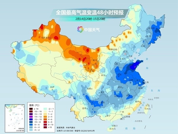 具體來看,14日隨著冷空氣主體抵達(dá),北方大部氣溫將出現(xiàn)明顯下滑,內(nèi)蒙古東部、吉林等地降溫10℃以上,15日,江淮、江南等地也會迎來10℃以上的“斷崖”式降溫。
