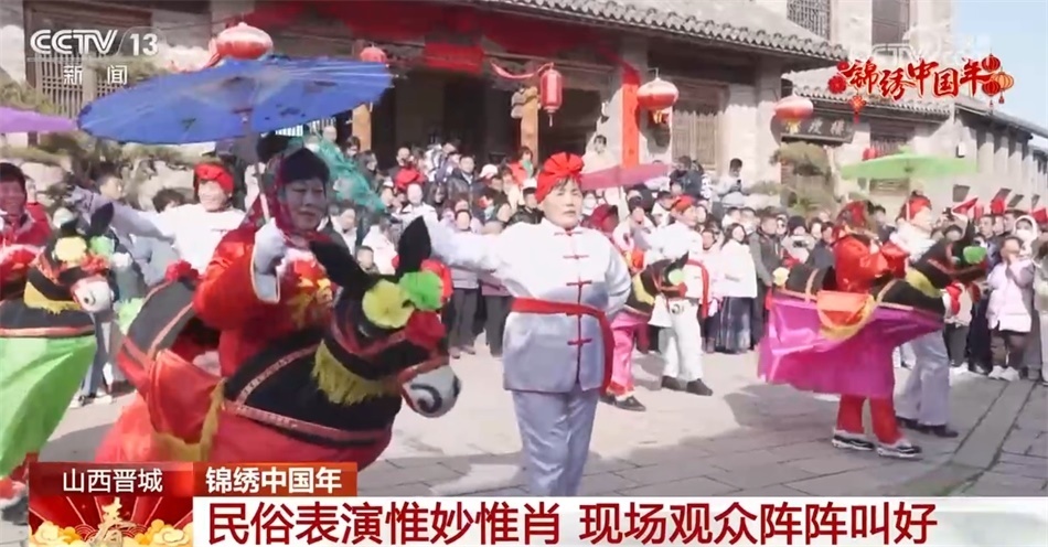 在山西晉城澤州縣大陽古鎮(zhèn)景區(qū),演員身著色彩鮮艷的古裝,伴著歡快熱鬧的小調(diào),自編自演的民俗表演輪番登場,擔(dān)花籃、劃旱船等特色傳統(tǒng)民俗節(jié)目演繹得惟妙惟肖,贏得現(xiàn)場觀眾陣陣叫好。