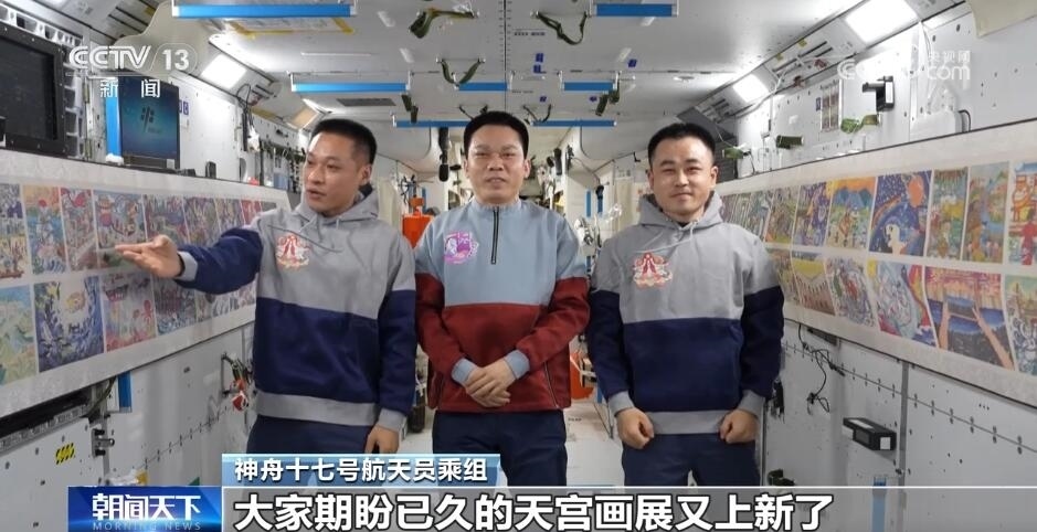 神舟十七號(hào)航天員乘組在鏡頭面前介紹“天宮畫展”時(shí)說:“全國各地的青少年朋友們,大家新年好!我們是神舟十七號(hào)航天員乘組,這里是咱們中國人自己的太空家園——中國空間站。分享一個(gè)好消息,大家期盼已久的天宮畫展又‘上新’了!”