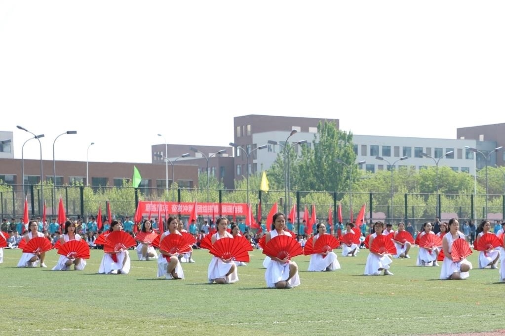 2019年4月26日,承德應(yīng)用技術(shù)職業(yè)學(xué)院學(xué)生在天津中德應(yīng)用技術(shù)大學(xué)運(yùn)動(dòng)會(huì)開幕式上表演。新華社發(fā)