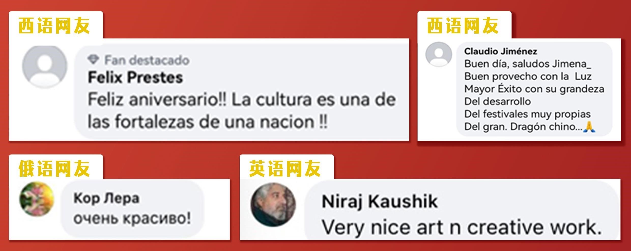文明魅力無國界,中國文化受海外網(wǎng)友追捧。《彩云追月》《小雅·鹿鳴》《蒲公英的天空》等節(jié)目讓海外受眾領(lǐng)略了元宵晚會蘊(yùn)含的文化底蘊(yùn)。眾多海外網(wǎng)友紛紛留言表達(dá)了對中華文化和中國節(jié)日的喜愛。西語網(wǎng)友Claudio Jiménez留言:“中國擁有這么多自己的節(jié)日,好棒”。西語網(wǎng)友Felix Prestes說:“文化是一個國家的基石,祝你們節(jié)日快樂!”英語網(wǎng)友Niraj Kaushik和Cham Gurung評論說:“很美且很有創(chuàng)意的作品”“節(jié)目令人印象深刻,我很喜歡”。