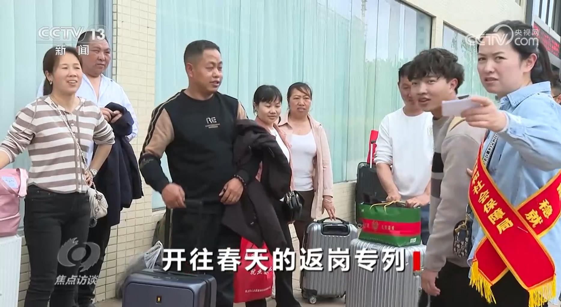 央視網消息(焦點訪談):春節(jié)假期一過,各地迎來了務工人員返崗高峰期。各地各部門組織的返崗專列、專車、專機,頻繁穿梭在繁忙的交通線上。作為勞務輸出大省,貴州省跨省務工的農村勞動力常年動態(tài)保持在600萬人左右,務工收入占到了農村家庭總收入四成以上,占脫貧勞動力家庭收入七成以上。大量的務工人員集中在節(jié)后要趕往千里之外的工作地點,有的還要找崗位,怎么幫助他們呢?