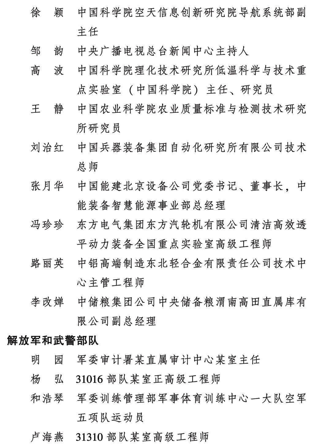 全國三八紅旗手標兵名單