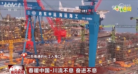 在江蘇南通的長(zhǎng)江入??冢粋€(gè)個(gè)造型各異的“巨無(wú)霸”讓人震撼。眼前的這艘海上浮式生產(chǎn)儲(chǔ)油輪已經(jīng)進(jìn)入最后的模塊吊裝施工階段。與此同時(shí),自升式風(fēng)電安裝船、全球最大集裝箱船等重點(diǎn)高端產(chǎn)品不斷取得突破。長(zhǎng)江入??谑墙K點(diǎn)也是起點(diǎn),所謂突破就是將終點(diǎn)當(dāng)成起點(diǎn),不停出發(fā)。