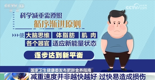 指南指出,科學減重需遵照循序漸進的原則,使大腦思維、體脂肪、肌肉和各個器官適應新能量狀態(tài),逐步達到新平衡。減重速度并非越快越好,過快的減重速度易對機體器官組織造成損傷,甚至危及生命。較為理想的減重目標應該是6個月內(nèi)減少當前體重的5%—10%,合理的減重速度為每月減2公斤—4公斤。