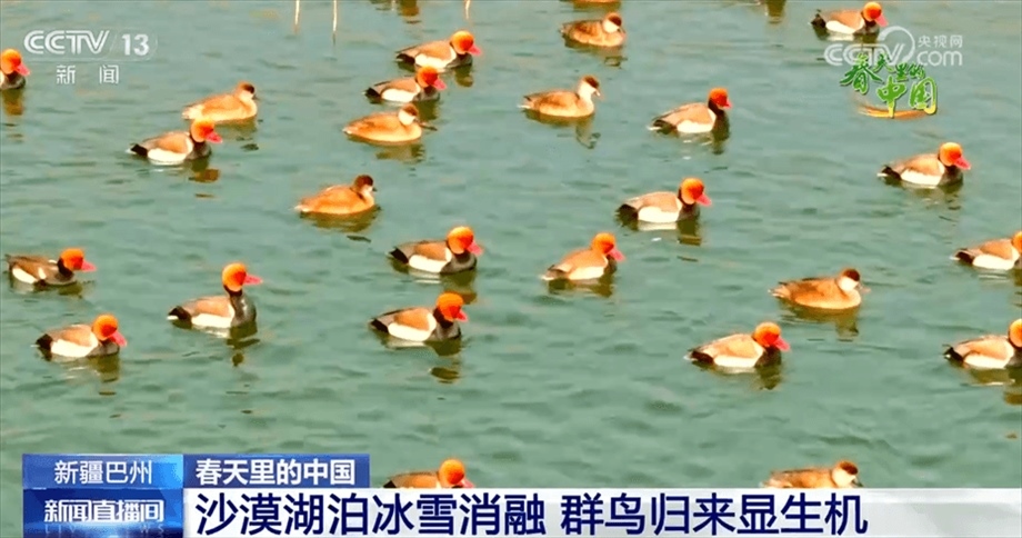 伴隨著陣陣鳥鳴,我們來到新疆巴州尉犁縣羅布淖爾國家濕地公園,碧綠的水面上,成群結(jié)隊的赤嘴潛鴨、赤麻鴨等鳥類時而用翅膀拍打水面展翅飛翔,時而三五成群在水中喜戲、覓食,群鳥與黃沙、碧水、葦叢、胡楊交相輝映,形成一幅生機(jī)勃勃的春日畫卷。