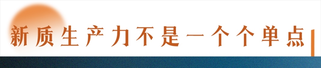 看懂了這一點(diǎn),也就看懂了我們發(fā)展新質(zhì)生產(chǎn)力的方式——新質(zhì)生產(chǎn)力不是一個(gè)個(gè)單點(diǎn),不是要一個(gè)個(gè)孤立地干,而是要基于我們龐大的產(chǎn)業(yè)生態(tài)優(yōu)勢,在不斷的連接、碰撞中,加速釋放創(chuàng)新能力。