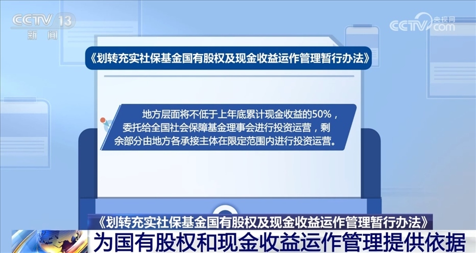 央視網(wǎng)消息:近日,財(cái)政部、人力資源社會(huì)保障部、國(guó)務(wù)院國(guó)資委三部門聯(lián)合印發(fā)了《劃轉(zhuǎn)充實(shí)社?;饑?guó)有股權(quán)及現(xiàn)金收益運(yùn)作管理暫行辦法》(以下簡(jiǎn)稱《辦法》)?!掇k法》為承接主體開展國(guó)有股權(quán)和現(xiàn)金收益運(yùn)作管理提供了依據(jù)。