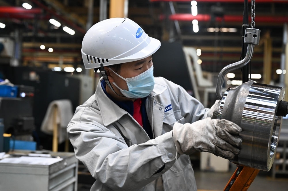 在位于常州市武進(jìn)區(qū)的江蘇恒立液壓股份有限公司,工人在車(chē)間忙碌(2023年12月22日攝)。新華社記者 季春鵬 攝