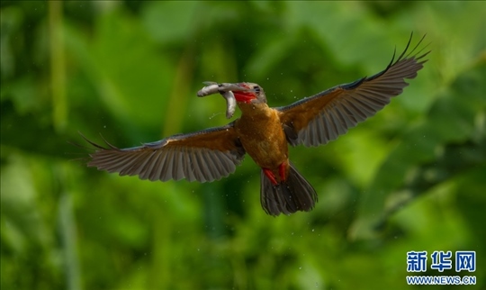 飛翔的鸛嘴翡翠(3月31日攝)。新華網發(fā)(高峰 攝)