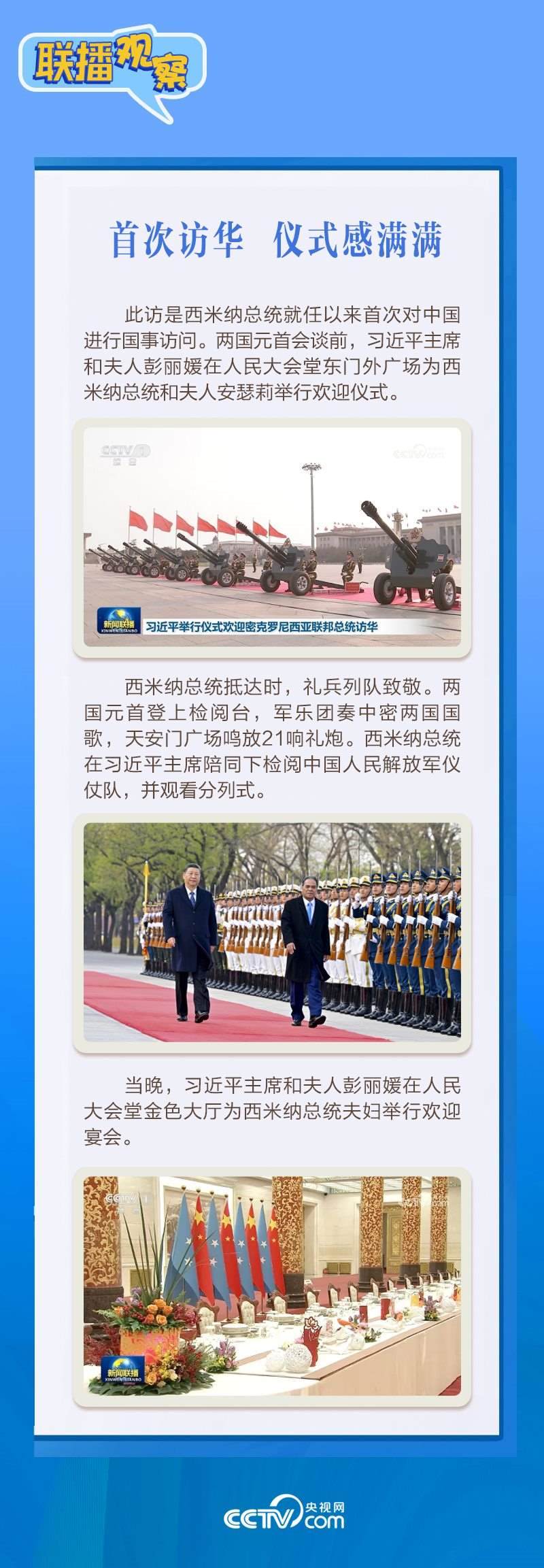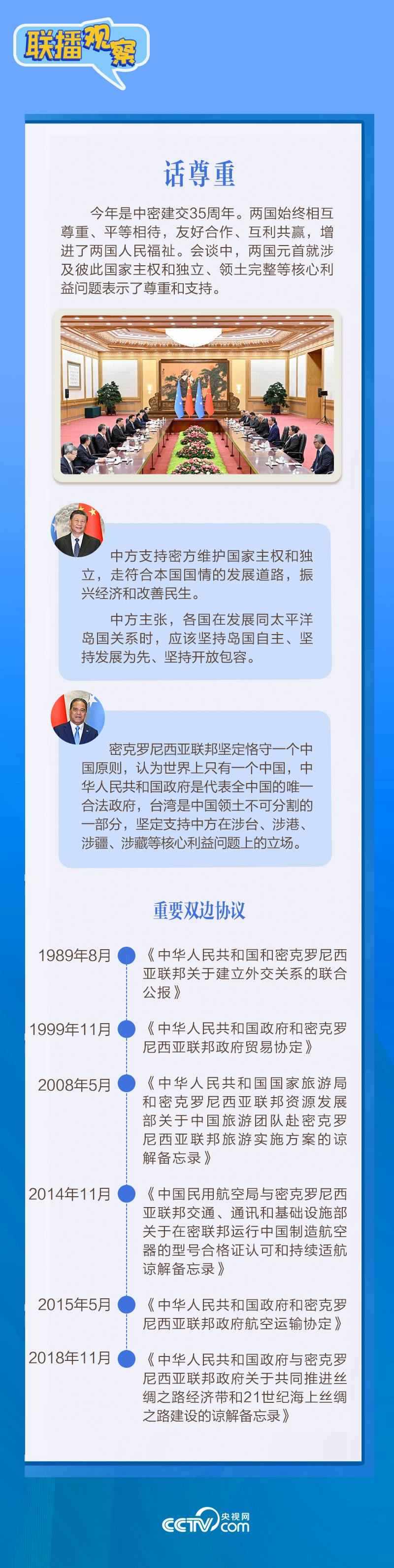 應(yīng)習(xí)近平主席邀請(qǐng),密克羅尼西亞聯(lián)邦總統(tǒng)韋斯利·西米納于4月5日至12日對(duì)中國(guó)進(jìn)行國(guó)事訪問(wèn)。4月9日下午,習(xí)近平主席在北京人民大會(huì)堂同西米納總統(tǒng)舉行會(huì)談,就雙邊關(guān)系發(fā)展及共同關(guān)心的問(wèn)題深入交換意見(jiàn)。雙方會(huì)談哪些細(xì)節(jié)值得關(guān)注?央視網(wǎng)《聯(lián)播觀察》帶您了解。