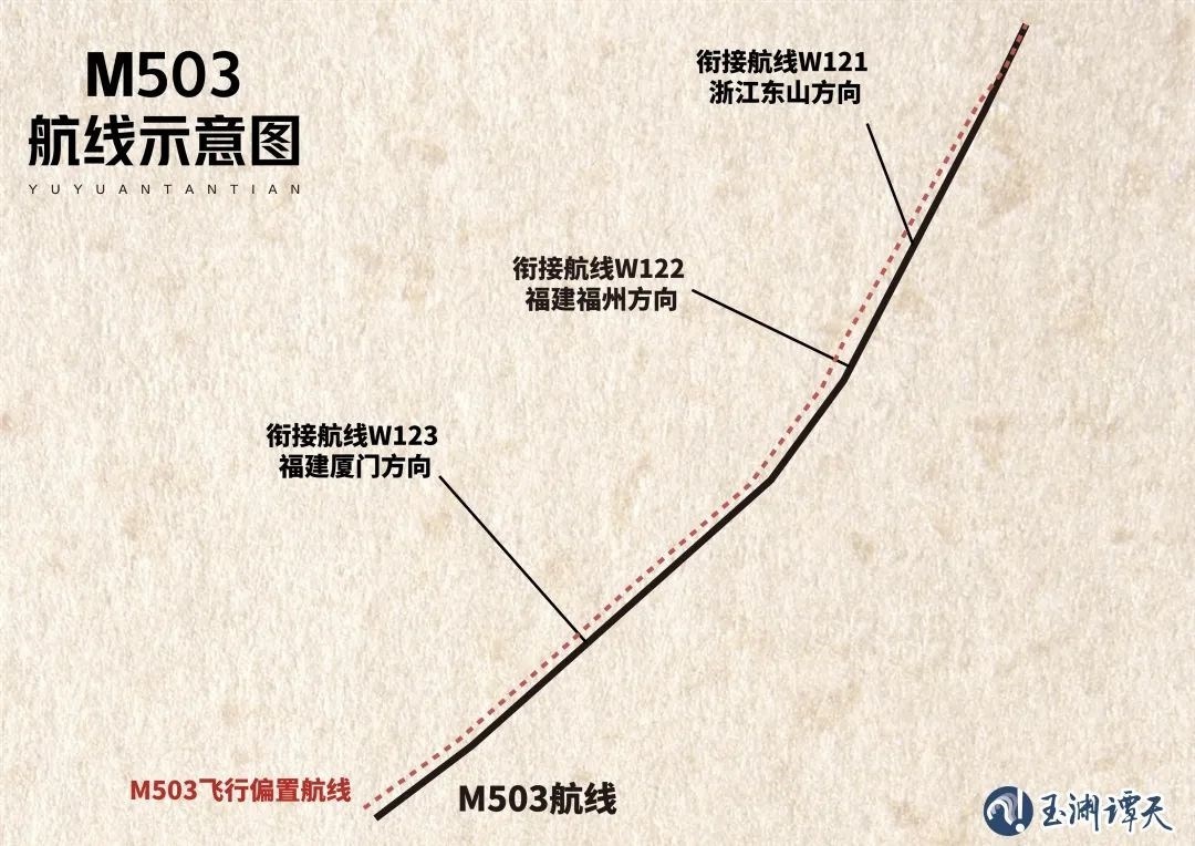 今年1月,民航局宣布,取消M503航線自北向南運行的飛行偏置措施。這一次,民航局又宣布啟用M503航線W122、W123銜接線由西向東運行。