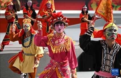 近日,來自廣東普寧的南山英歌隊在第135屆廣交會上進行英歌舞展演,吸引各國采購商、參展商駐足觀看。