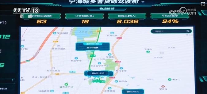 當(dāng)這些打包好的快遞包裹袋上車后,公交車上的大屏幕內(nèi)置讀卡器感應(yīng)到包裹袋上的二維碼,遠(yuǎn)在32公里之外的寧海客貨郵智控管理中心內(nèi),包裹實時信息和公交車運行軌跡都出現(xiàn)在了大屏幕上。