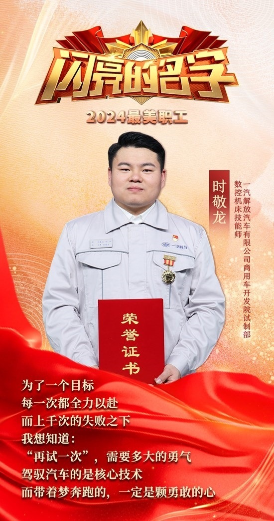 時敬龍、詹春珮、孔德年、檀世旺、王慶安、蒲玉、李春喜、程恩虎、張桂容9名全國五一勞動獎?wù)芦@得者光榮入選2024年“最美職工”。他們堅持以習(xí)近平新時代中國特色社會主義思想為指導(dǎo),誠實(shí)勞動、勤勉敬業(yè),敢為人先、爭創(chuàng)一流,有的積極投身國產(chǎn)汽車品牌關(guān)鍵技術(shù)研發(fā),有的堅守海上一線巡航執(zhí)法,有的運(yùn)用大數(shù)據(jù)賦能偵查破案,有的扎根鄉(xiāng)鎮(zhèn)風(fēng)雨無阻服務(wù)鄉(xiāng)親,有的深入田間地頭助力農(nóng)業(yè)技術(shù)推廣,有的立足崗位傾注真情用心服務(wù),有的牢記囑托傾心守護(hù)洱海清波,有的不畏艱難向險而行護(hù)佑平安,有的服務(wù)體貼熱心公益成為“金牌司機(jī)”,他們以飽滿的熱情、頑強(qiáng)的奮斗、智慧的創(chuàng)造在平凡崗位中創(chuàng)造了不凡業(yè)績,生動展現(xiàn)了新時代工人階級的精神風(fēng)貌。