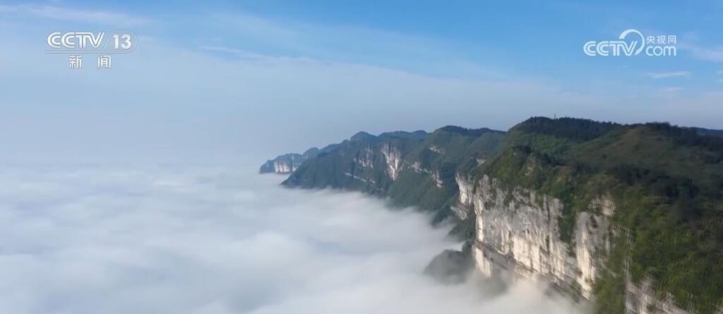 重慶彭水:日出霞光照萬(wàn)丈 百里云海飛瀑來(lái)