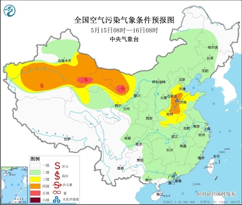 15日,新疆南部和東部、甘肅西部、內(nèi)蒙古西部、青海北部等地有沙塵天氣,新疆東部、甘肅西部、內(nèi)蒙古西部局地有沙塵暴。