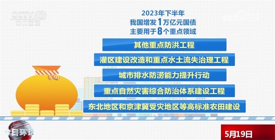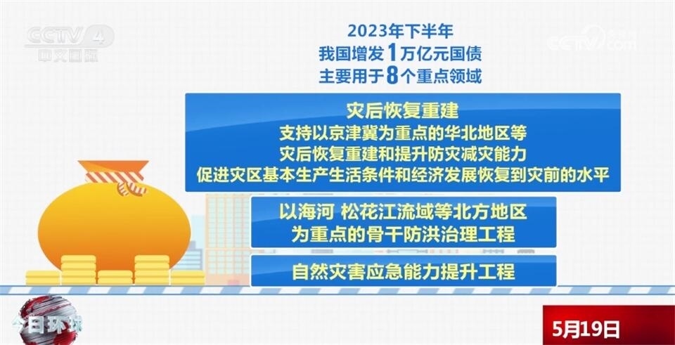 去年下半年,我國增發(fā)了1萬億元國債,主要用于8個(gè)重點(diǎn)領(lǐng)域,包括災(zāi)后恢復(fù)重建,支持以京津冀為重點(diǎn)的華北地區(qū)等災(zāi)后恢復(fù)重建和提升防災(zāi)減災(zāi)能力,促進(jìn)災(zāi)區(qū)基本生產(chǎn)生活條件和經(jīng)濟(jì)發(fā)展恢復(fù)到災(zāi)前的水平,以海河、松花江流域等北方地區(qū)為重點(diǎn)的骨干防洪治理工程,自然災(zāi)害應(yīng)急能力提升工程,其他重點(diǎn)防洪工程,灌區(qū)建設(shè)改造和重點(diǎn)水土流失治理工程,城市排水防澇能力提升行動(dòng),重點(diǎn)自然災(zāi)害綜合防治體系建設(shè)工程,東北地區(qū)和京津冀受災(zāi)地區(qū)等高標(biāo)準(zhǔn)農(nóng)田建設(shè)。