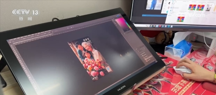 AI畫師鄧博正在設(shè)計一幅母親節(jié)的主題海報。如果使用傳統(tǒng)手繪加圖片編輯方式,這樣一張海報鄧博至少要做上兩到三天。不過現(xiàn)在,使用AI進行輔助生成,從接到需求到交付出多張不同風(fēng)格的高質(zhì)量海報,鄧博只用了不到10分鐘的時間。