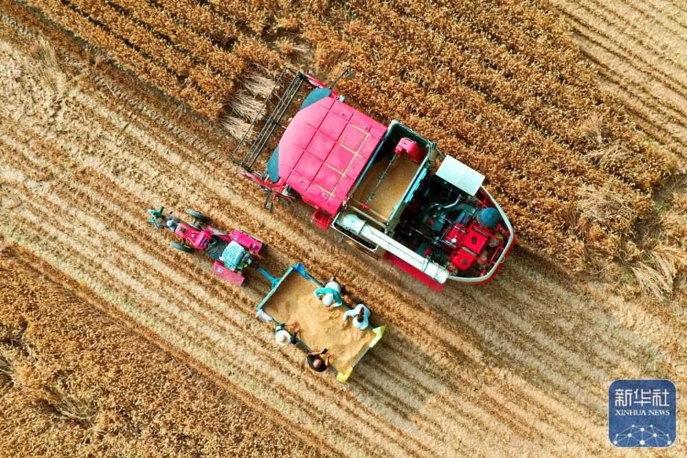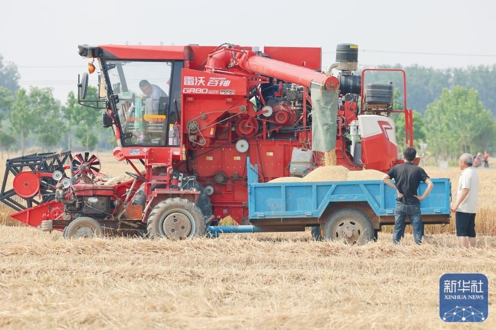 5月26日,河南省開封市尉氏縣邢莊鄉(xiāng)北丁莊村村民丁雙喜在收獲小麥。新華社發(fā)(李新義攝)