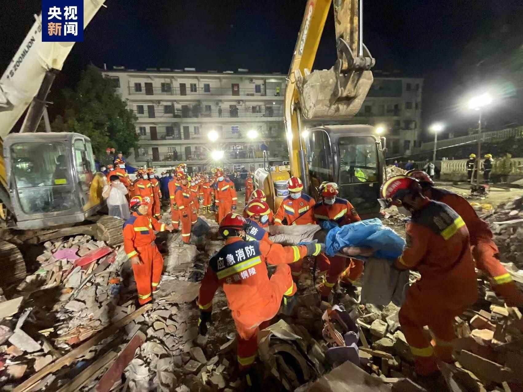 安徽銅陵郊區(qū)大通鎮(zhèn)居民樓坍塌事故現(xiàn)場(chǎng)發(fā)現(xiàn)一名失聯(lián)人員