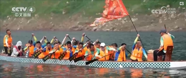 這幾天,在湖北秭歸水田壩鄉(xiāng)的吒溪河上,當(dāng)?shù)?支龍舟隊(duì)為備戰(zhàn)龍舟大賽,正在如火如荼地開展賽前訓(xùn)練。龍舟隊(duì)員手持船槳,隨鼓點(diǎn)節(jié)奏奮力揮動(dòng)、動(dòng)作整齊,隊(duì)員們?cè)谝淮未斡?xùn)練中擰成一股繩,龍舟如離弦之箭在清澈的河面上劈波斬浪。