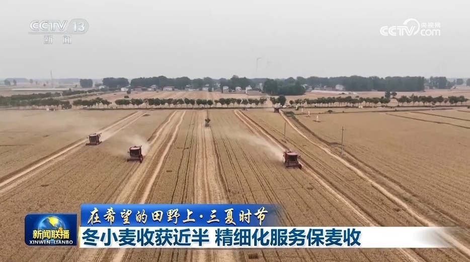 央視網(wǎng)消息(新聞聯(lián)播):農(nóng)業(yè)農(nóng)村部最新數(shù)據(jù)顯示,當(dāng)前全國(guó)已收獲冬小麥面積1.57億畝,收獲進(jìn)度近半。各地因地制宜推出了各類服務(wù)舉措,保障小麥顆粒歸倉(cāng)。