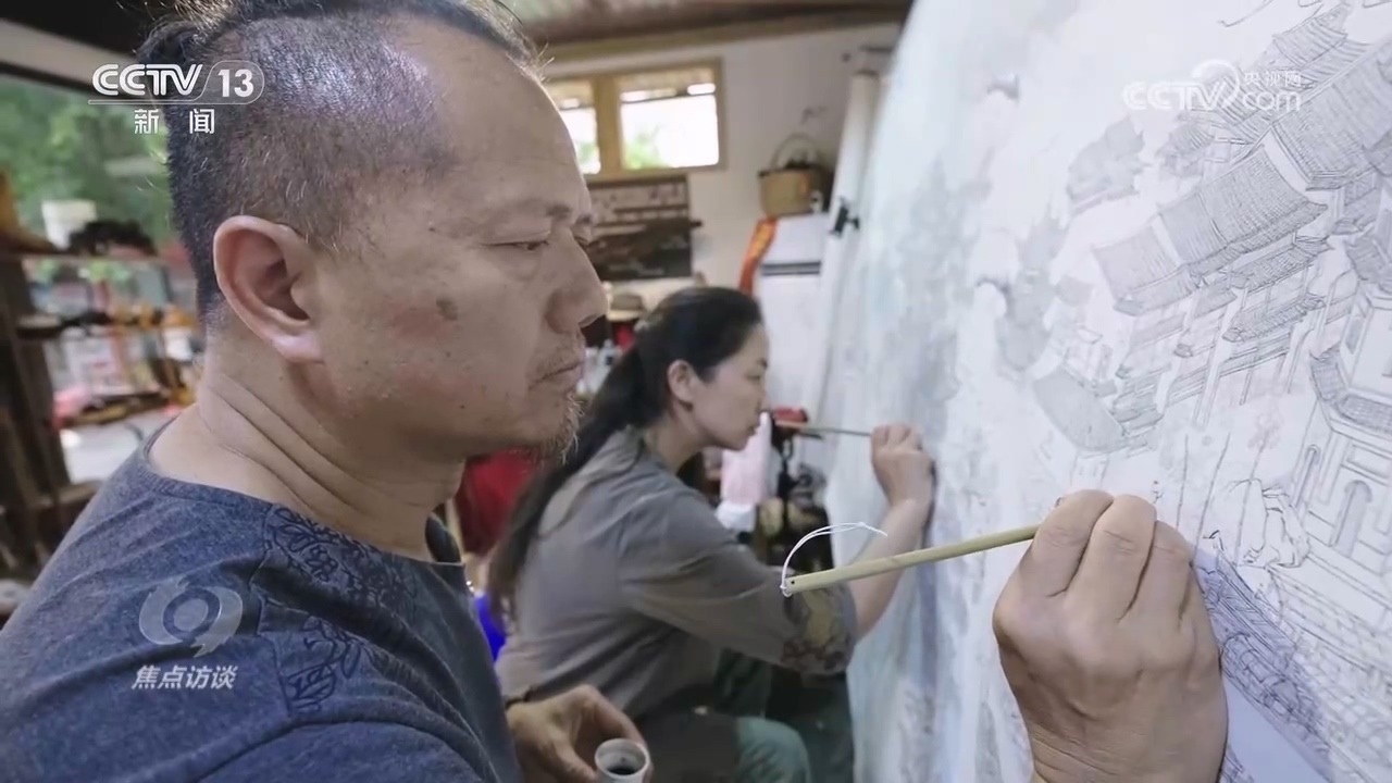 手工制作的常德米粉,傳承了幾代人的糕點,麻質(zhì)畫、木雕,漁鼓戲、漢劇等等這些沅水流域的碼頭文化元素,在今天的新河街也孕育著新的生命力。麻陽街口的一間玻璃屋是大型木雕《湘行散記》的創(chuàng)作地。一幅長20米的畫卷將在十年之后以兩面木雕的形式再現(xiàn)沈從文筆下河街的繁華。