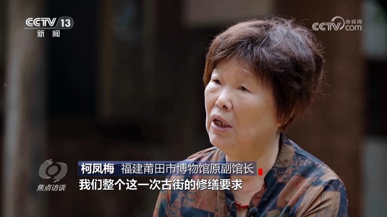 福建莆田市博物館原副館長柯鳳梅:“整個古街的修繕是按文物的要求來做,修繕完以后,我們最滿意的是在外的游子回來還認(rèn)得路、認(rèn)得房子,很簡樸的一句‘都沒怎么變’,我們聽到這句話以后,感到很欣慰,我們做得辛苦也是值得。”