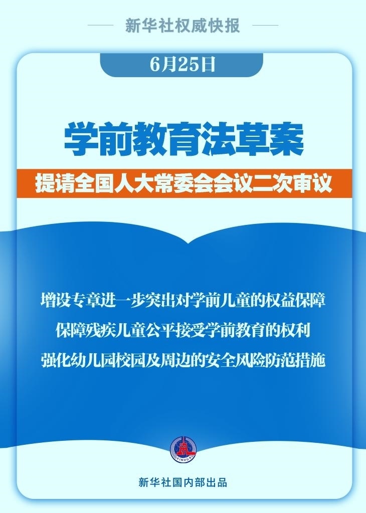 學(xué)前教育法草案6月25日提請(qǐng)全國人大常委會(huì)會(huì)議二次審議。
