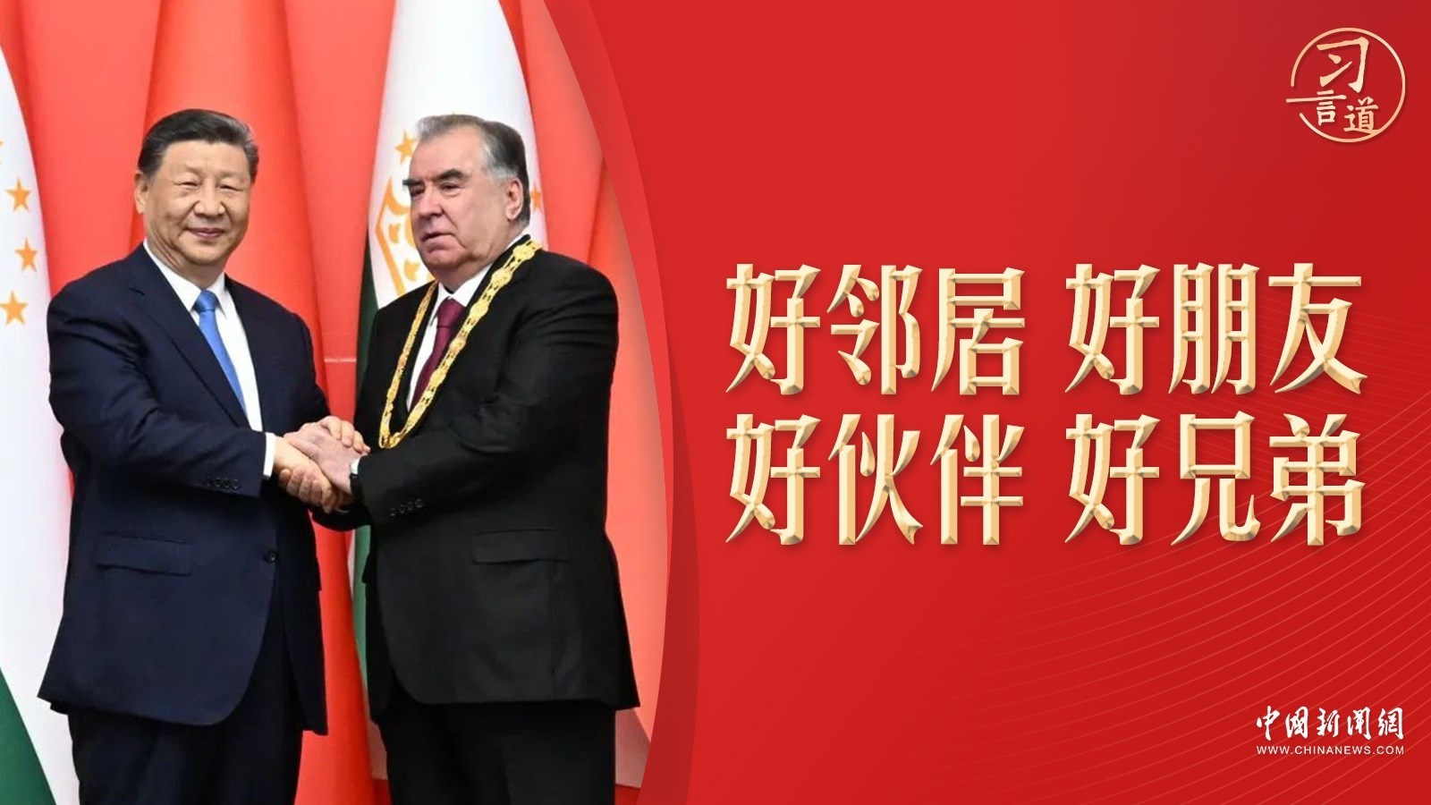 彼時(shí),習(xí)近平說,“拉赫蒙總統(tǒng)授予我‘王冠勛章’,飽含著全體塔吉克斯坦人民對中國人民的深情厚誼,我對此十分珍視”。