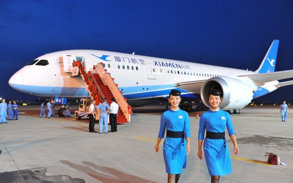 廈航迎接公司首架波音787飛機(jī)(2014年8月31日攝)。新華社記者 林善傳 攝
