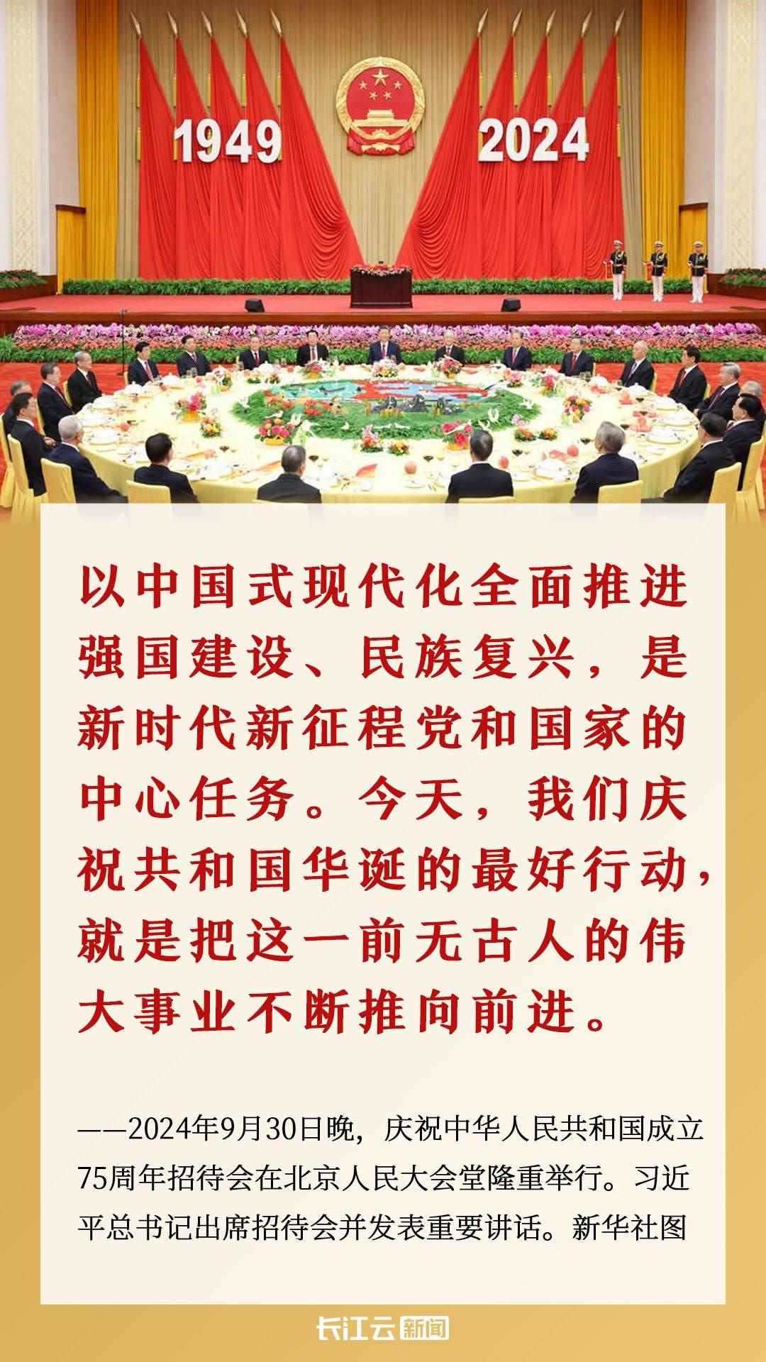 習(xí)近平總書記在慶祝中華人民共和國成立75周年招待會(huì)上講話時(shí)指出,“以中國式現(xiàn)代化全面推進(jìn)強(qiáng)國建設(shè)、民族復(fù)興,是新時(shí)代新征程黨和國家的中心任務(wù)。今天,我們慶祝共和國華誕的最好行動(dòng),就是把這一前無古人的偉大事業(yè)不斷推向前進(jìn)”。