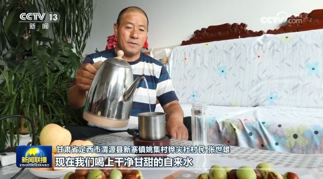 金秋十月,甘肅定西渭源縣姚集村一派豐收景象。可在十年前,缺水讓這里土地貧瘠,村民都是靠水窖存下的雨水和苦咸水生活。